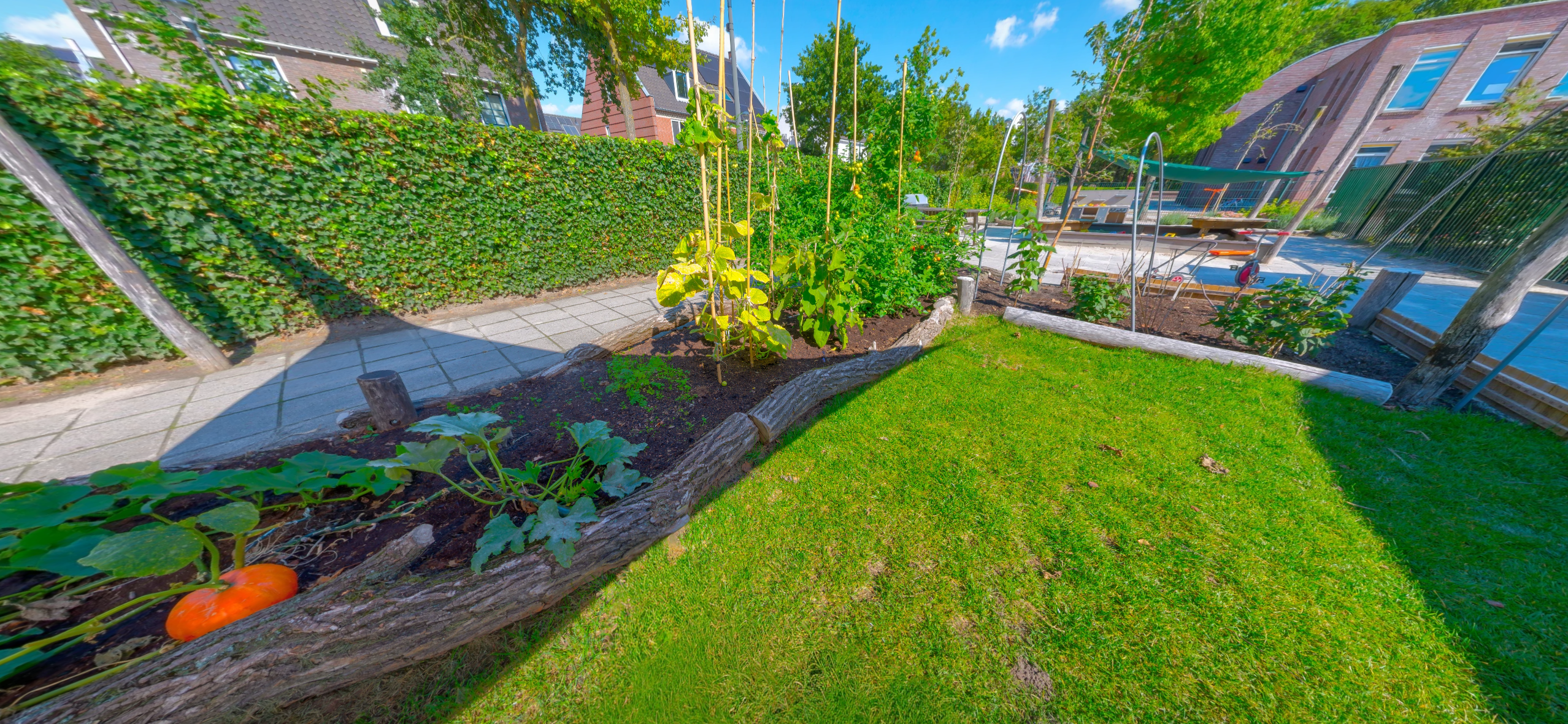 - Aparte buitenruimte waar de kinderen zich kunnen uitleven, met picknicktafel, zandbak en krijtborden.
